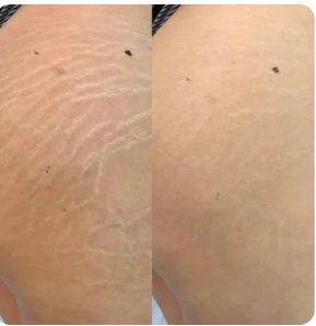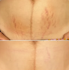 Los ingredientes activos aceleran la renovación de las células dérmicas, ayudando a difuminar el color y la textura de las estrías tanto recientes (rojas) como antiguas (blancas).